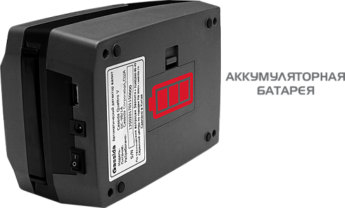 Компактный и надежный детектор Cassida Quattro работает с российскими рублями. Имеет достаточно высокую скорость банкноты и проводит детекцию в режимах: SD: контроль размера банкнот, UV: контроль в УФ диапазоне, MG: магнитная детекция, IR: контроль ИК защиты, DD: контроль оптической плотности, SP: спектральный анализ краски. Работает от сети или аккумулятора, который является опциональным решением. Есть режимы суммирования и пересчета. Для связи с ПК используется USB.