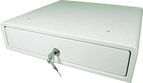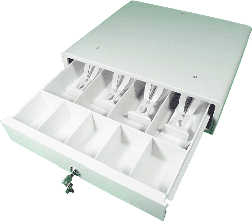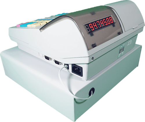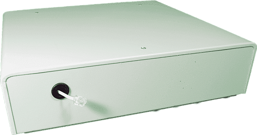 Электромеханический денежный ящик WAB 08RK (WAB 04RK) с возможностью подключения к кассе через порт RJ12. Имеет 5 отсеков под монеты и 4 отсека для купюр.