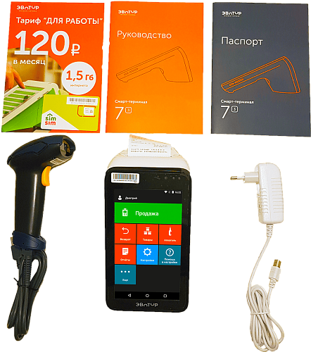 Эвотор 7.3 стандарт это комплект Смарт-Терминала нового поколения и сканера штрих-кодов 2D. Данную комплектацию можно использовать для недорогой автоматизации в магазине или кафе.