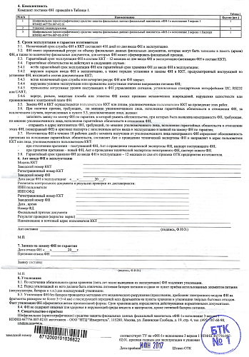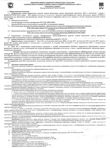 Фискальный накопитель сроком действия 13 месяцев с момента активизации в составе кассового аппарата.