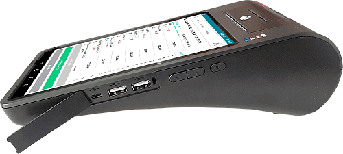 Переносной (мобильный) кассовый аппарат на основе планшета черного цвета со встроенным аккумулятором для автономной работы.