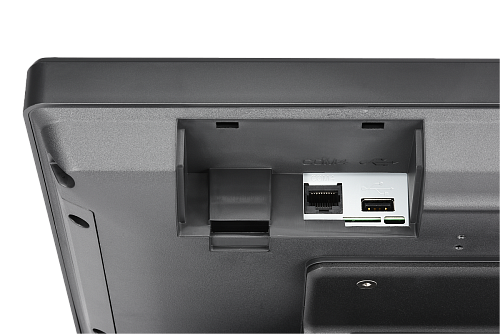 Множество интерфейсных портов в верхней части позволяют подключить все необходимое оборудование и интегрировать терминал в торгово-кассовую систему.