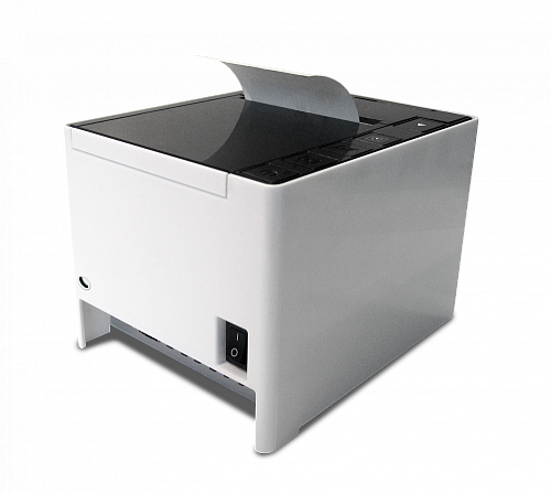 Высокоскоростной принтер со скоростью печати 300 мм в секунду. Выполнен в современном дизайне. Имеет порты для подключения к ПК через RS 232, USB, LAN. Есть разъем клавиатуры PS/2 для автономной работы и разъем для подключения автоматического денежного ящика.